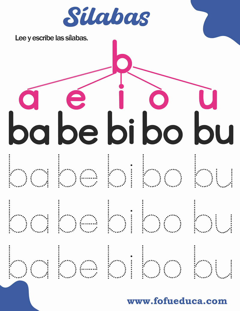 Actividades para que los niños comiencen a escribir, pronunciar y reconocer las sílabas.
